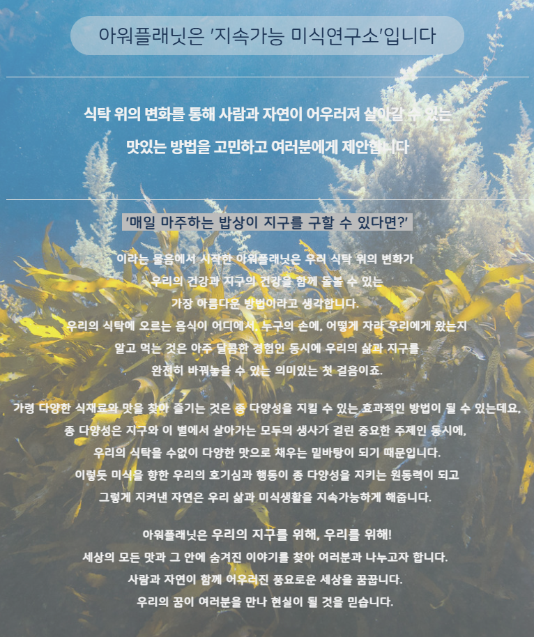 이라는 물음에서 시작한 아워플래닛은 우리 식탁 위의 변화가